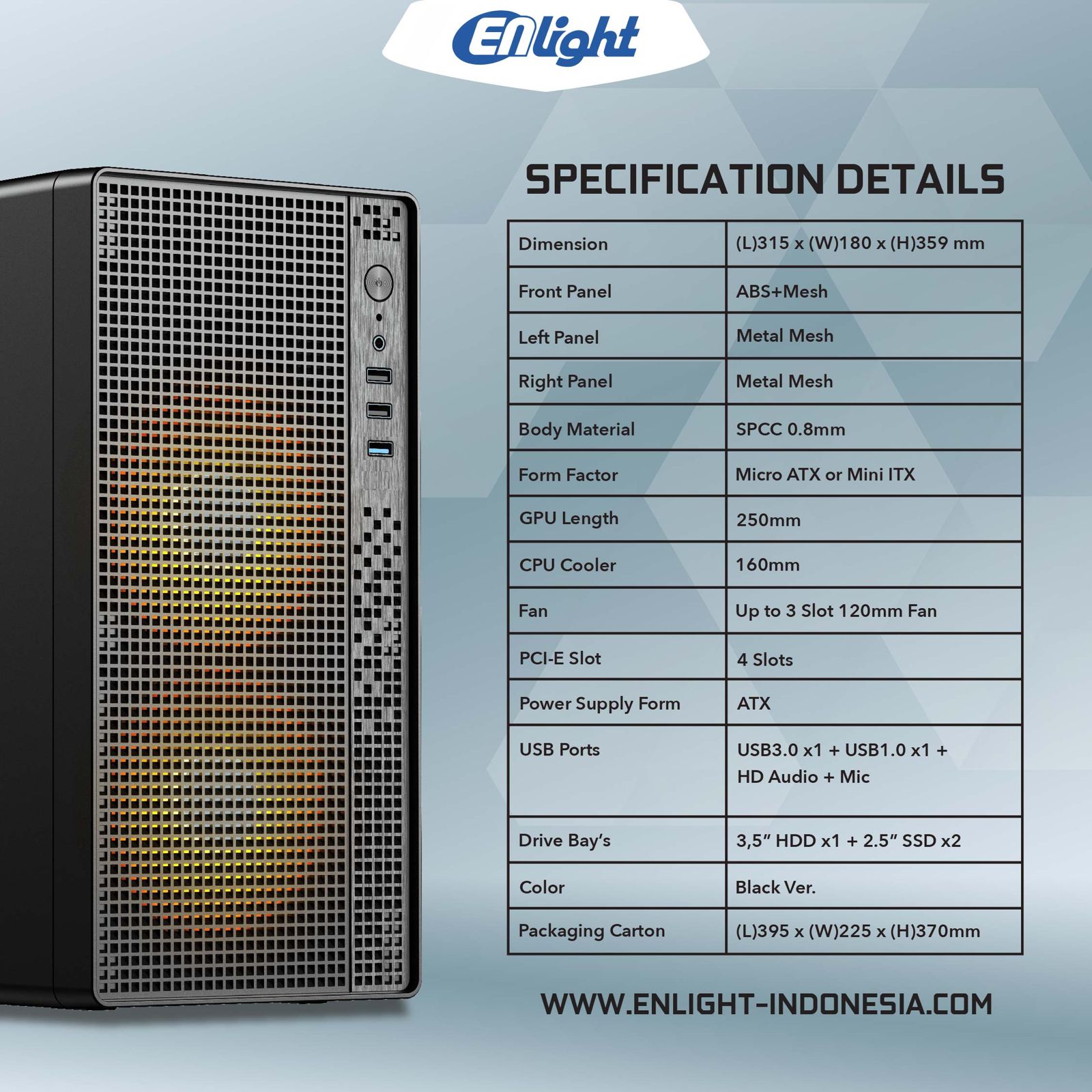 with ABS Mesh Design on The Front Panel and Metal Mesh on The Left and Right Panel. - Unique Design for Office Case